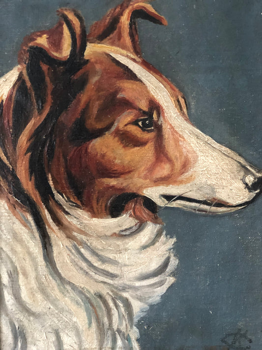 Original Vintage Dog Portrait Oil Painting, circa 1914