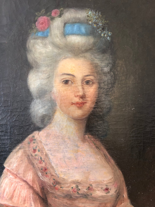 Antique 18th Century Rococo Portrait Painting of an Aristocratic Lady - Inspired By Marie Antoinette