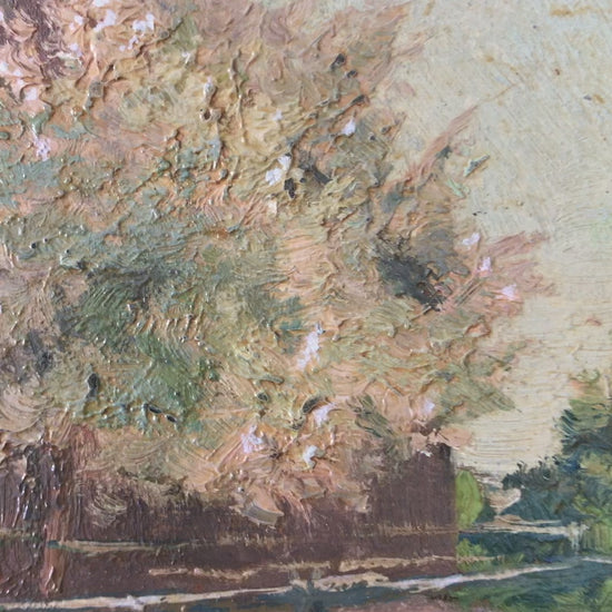 Original Vintage Countryside Cottage Landscape Oil Painting, circa 1925