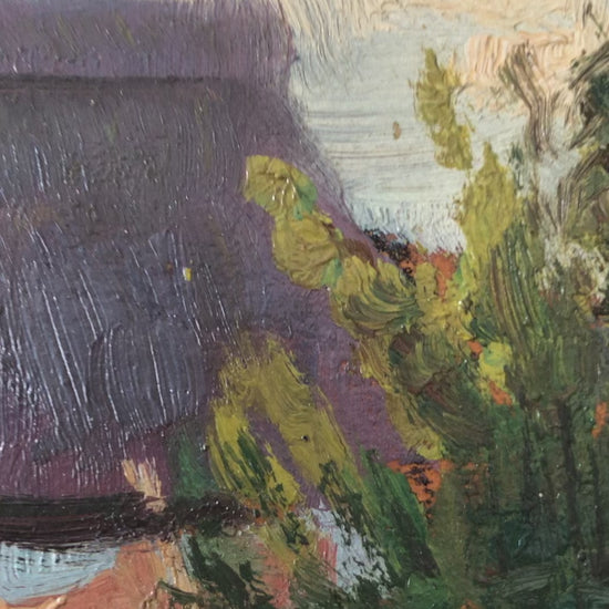 Original Vintage Landscape Cottage Nature Oil Painting, circa 1925