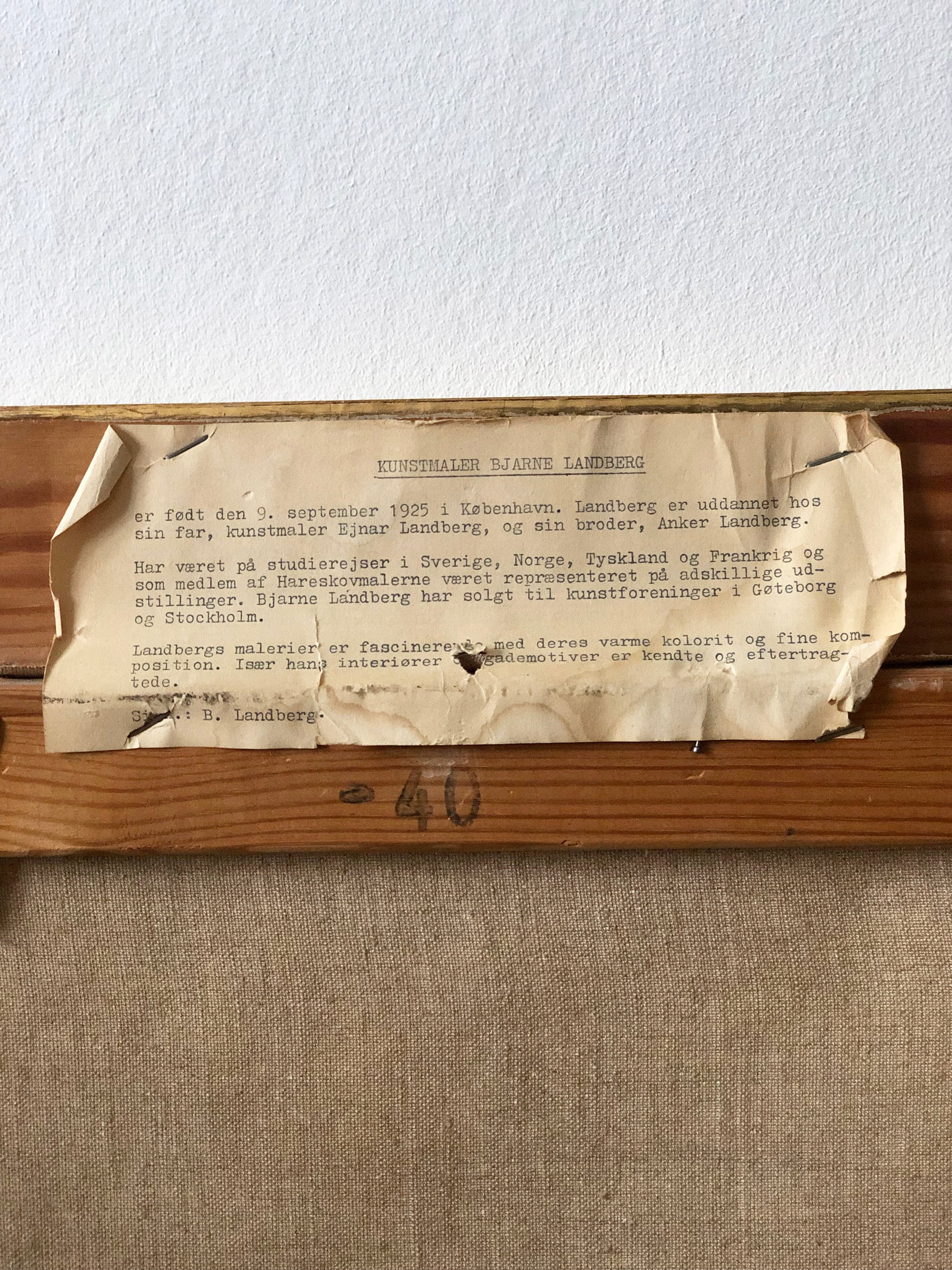 Provenance: the painting is an original work by Danish artist Bjarne Landberg. Artist information label is on the back of the painting.